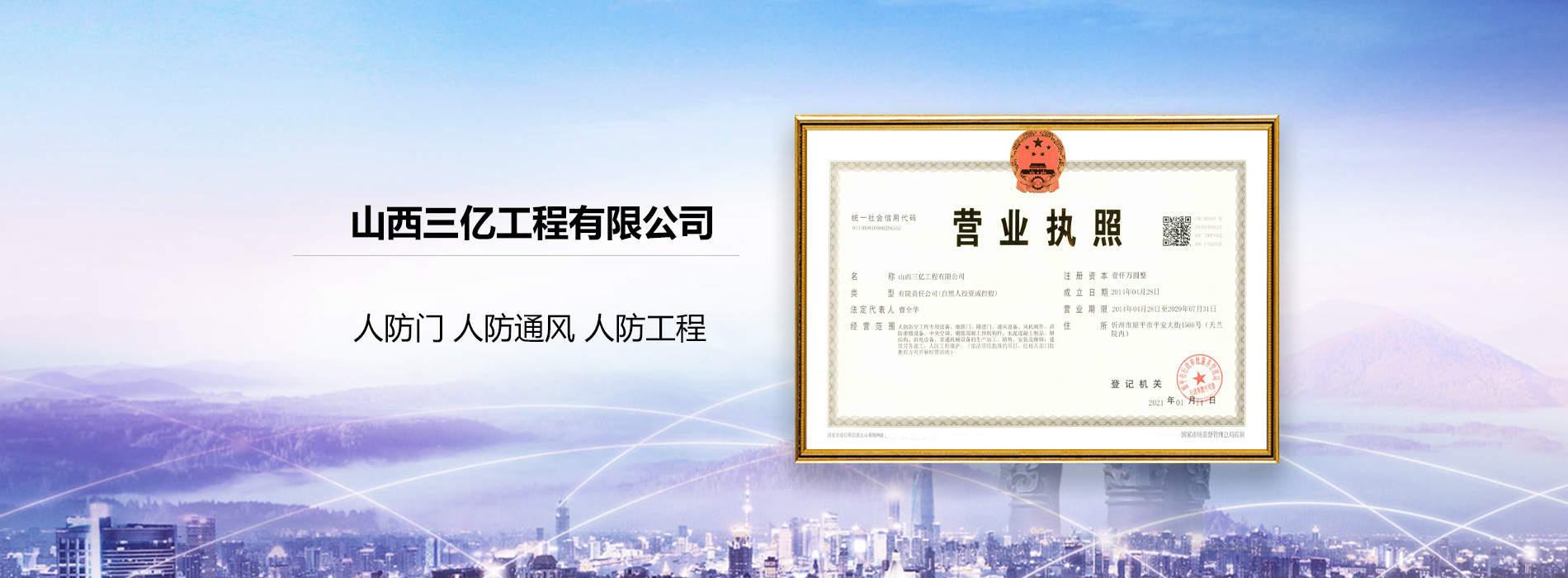山西三億工程有限公司是經(jīng)人民防空辦公室批準的人防工程的生產(chǎn)和定點安裝企業(yè)。公司及研發(fā).制造.銷售.服務(wù)于一體,產(chǎn)品通過 ISO9001 質(zhì)量認證,并列入《人民防空設(shè)備產(chǎn)品目錄》。